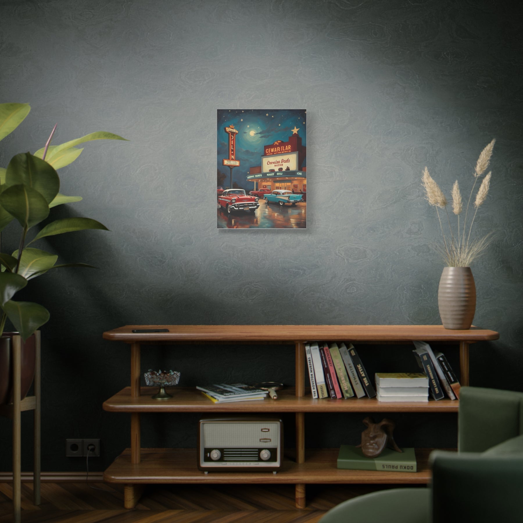 Transform your living space with this stunning matte canvas print. Featuring vibrant, nostalgic imagery of classic cars against a dreamy night sky, this canvas evokes a sense of warmth and whimsy. Perfect for adding a touch of retro charm to any room, it brings back fond memories of the golden age of automobiles. Ideal for car enthusiasts, vintage lovers, and anyone looking to add character to their home. This versatile piece fits seamlessly into a living room, bedroom, or office. It's a thoughtful gift for birthdays, housewarming parties, or retro-themed celebrations!