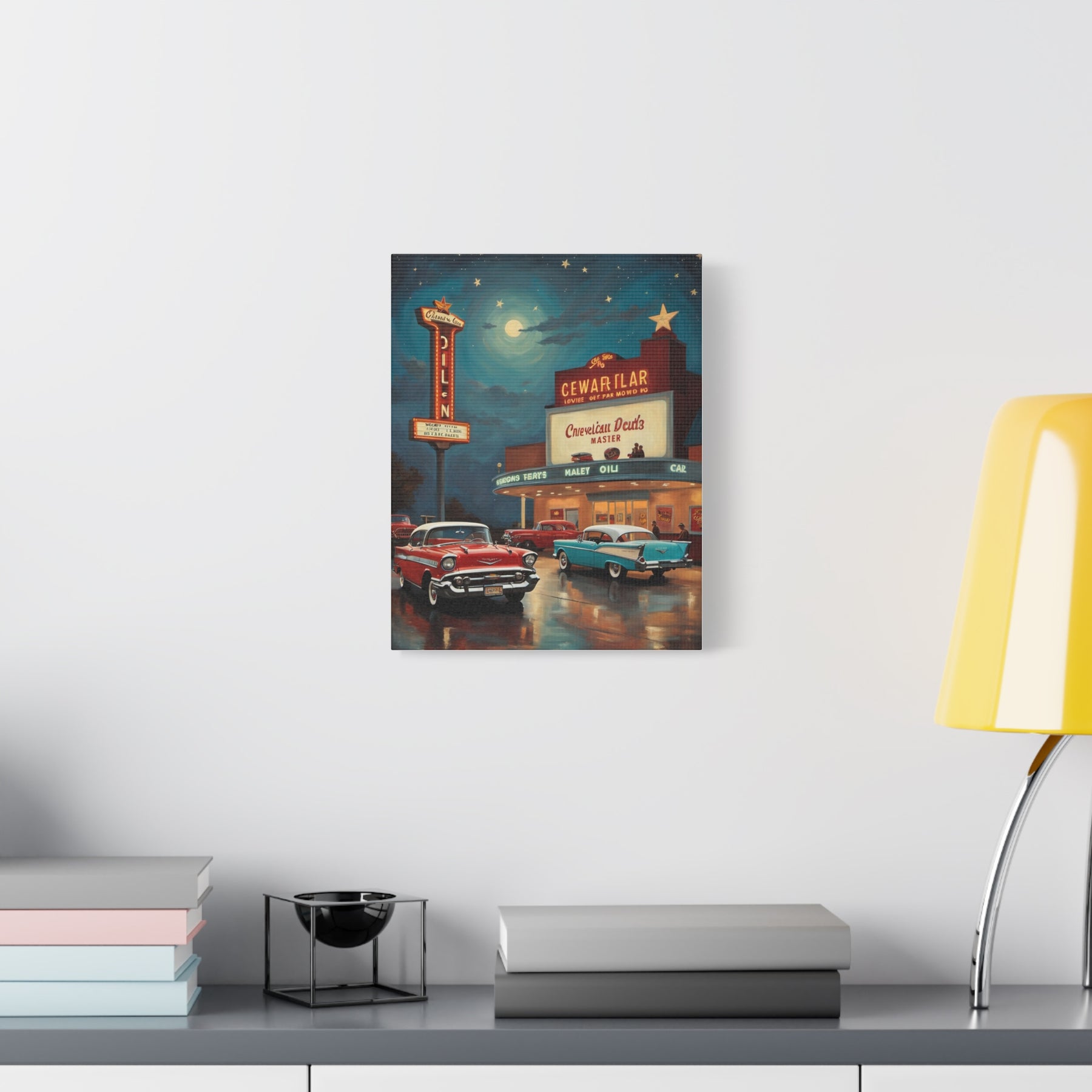Retro Movie Theater Canvas Print, Vintage Art, Home Decor, Wall Art, Nostalgic Gift, Cinema Decor, Gift for Car Lovers