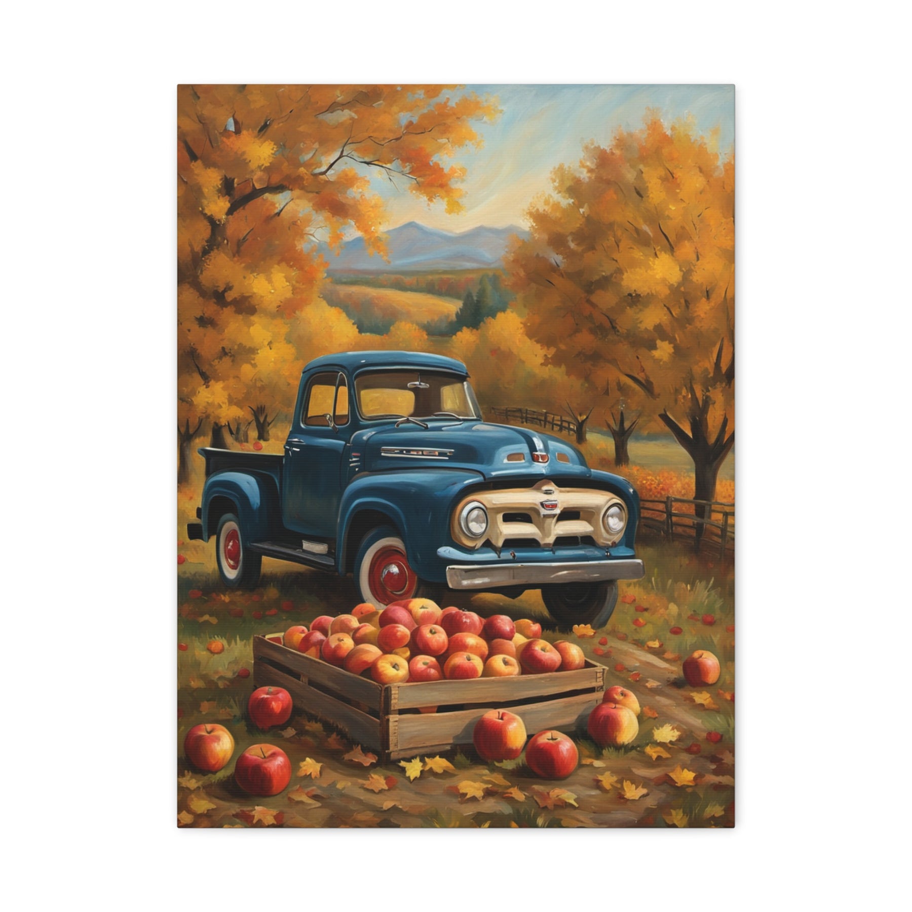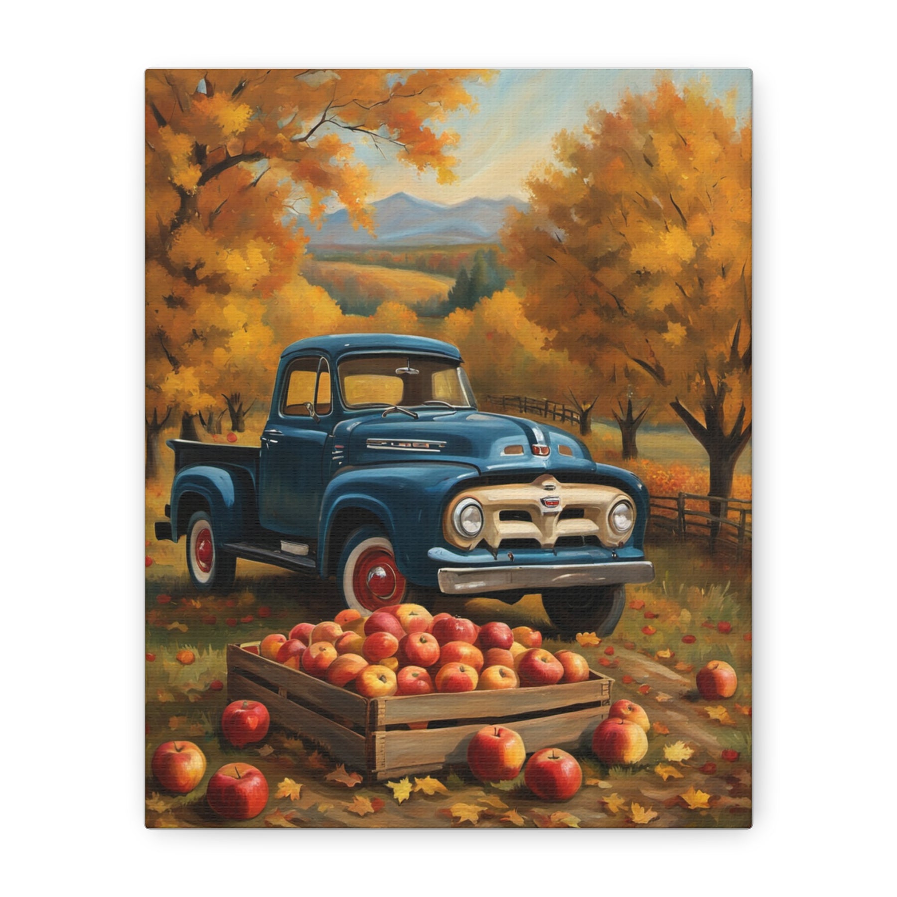 Transform your space with this exquisite Matte Canvas, Stretched art piece that radiates warmth and nostalgia. Featuring a charming scene of a classic blue truck surrounded by vibrant autumn trees and a bountiful apple harvest, this canvas captures the essence of fall and cozy gatherings. Ideal for anyone looking to enhance their home with a touch of rustic beauty, it effortlessly complements both modern and traditional decor. Perfect for seasonal celebrations, Thanksgiving gatherings, or simply for those who appreciate artisanal craftsmanship, this canvas is a heartwarming addition to your living room, kitchen, or entryway. Enjoy the inviting atmosphere it brings, welcoming friends and family with a slice of country charm.