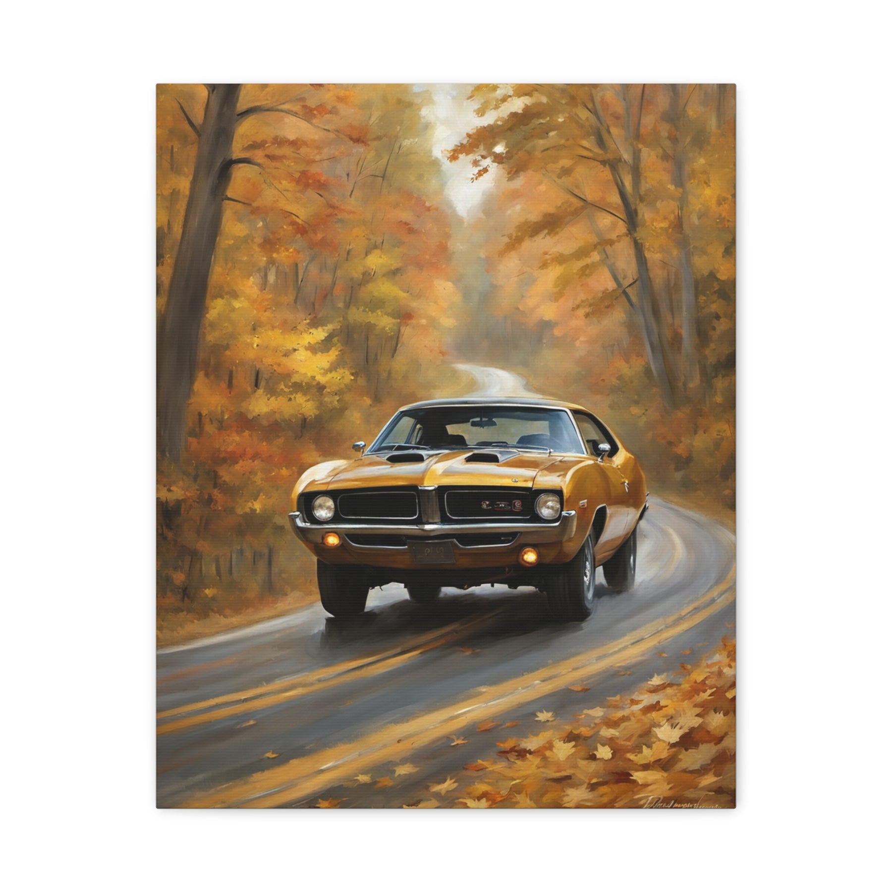 Transform your space with this stunning stretched canvas print that captures the vibrant essence of autumn. The artwork depicts a classic car cruising through a picturesque landscape adorned with golden leaves, evoking a sense of nostalgia and adventure. Perfect for car enthusiasts and autumn lovers alike, this canvas adds warmth and character to any room. Celebrate the beauty of nature and the thrill of the open road, making it an ideal gift for housewarmings, birthdays, or as a holiday decoration. Bring a touch of the season into your home with this exquisite piece that resonates with love for classic vehicles and the spirit of adventure.