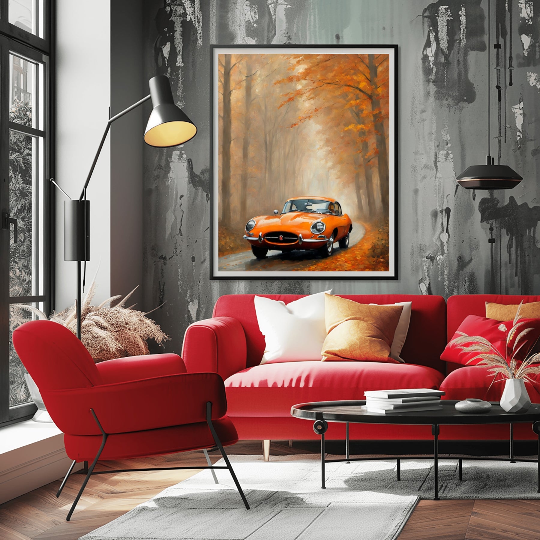 This misty road landscape artwork makes a thoughtful gift. It suits birthdays and housewarmings. The classic car and autumn setting appeal to many tastes. Enhance your décor with a print that tells a story. Enjoy the charm and warmth it brings to any area.