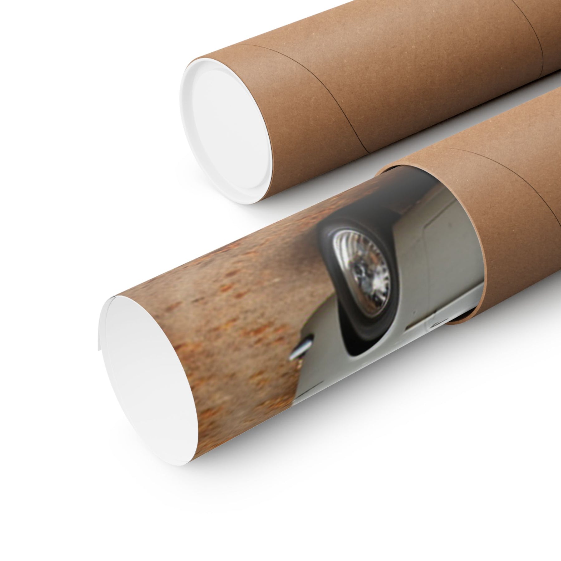 Classic car wall art for home decor rolled in a cardboard tube, showcasing vintage vehicle design